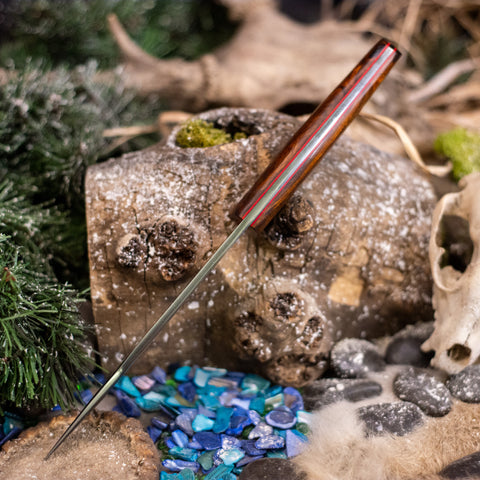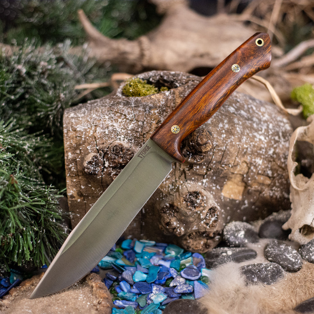 Made from 5/32” thick A2 tool steel at 62 HRC, it offers excellent toughness and edge retention. A flat saber grind ensures strength and versatility, while the swedge improves balance and piercing performance.