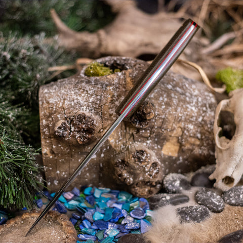 Made from 5/32” thick A2 tool steel at 62 HRC, it offers excellent toughness and edge retention. A flat saber grind ensures strength and versatility, while the swedge improves balance and piercing performance.