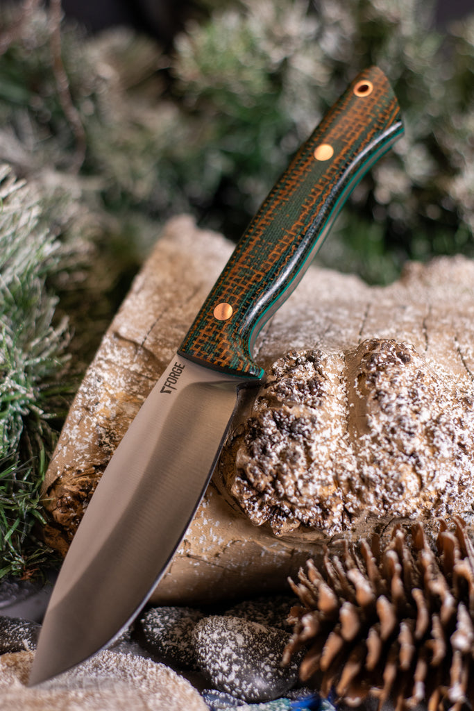 The 7Forge Arctic Hunter is a refined field knife built for cold climates, hard use, and traditional practicality. Designed as part of the Artemis Platform, the Arctic Hunter pairs the proven ergonomics of the Artemis Hunter handle with a Canadian belt knife–inspired leaf-shaped blade featuring a flat saber grind, delivering excellent slicing performance with added edge stability.