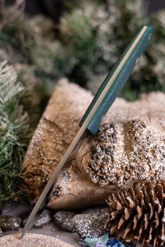 The 7Forge Arctic Hunter is a refined field knife built for cold climates, hard use, and traditional practicality. Designed as part of the Artemis Platform, the Arctic Hunter pairs the proven ergonomics of the Artemis Hunter handle with a Canadian belt knife–inspired leaf-shaped blade featuring a flat saber grind, delivering excellent slicing performance with added edge stability.