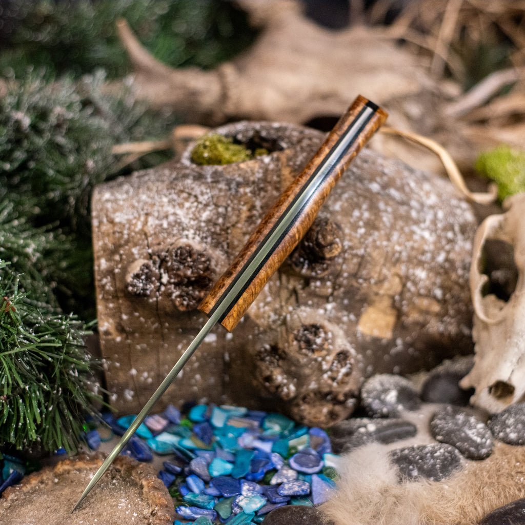 The Artemis Hunter pairs beauty with functionality with its tapered tang. By tapering the tang, we remove weight from the handle without sacrificing strength. This leads to a lighter and better-balanced blade.