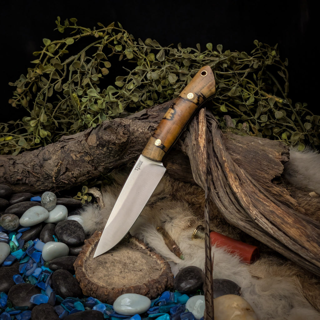 The Fennec is a precision-crafted hunting knife designed for serious outdoorsmen. Ground from high-performance Nitro-V stainless steel and hardened to 61–62 HRC, it delivers exceptional edge retention, toughness, and corrosion resistance. Measuring 8.5" overall with a perfectly balanced 4.25" blade, the Fennec offers excellent control and cutting power in a compact profile. Built for reliability in the field, this knife is a dependable companion for hunting, skinning, and outdoor adventures.
