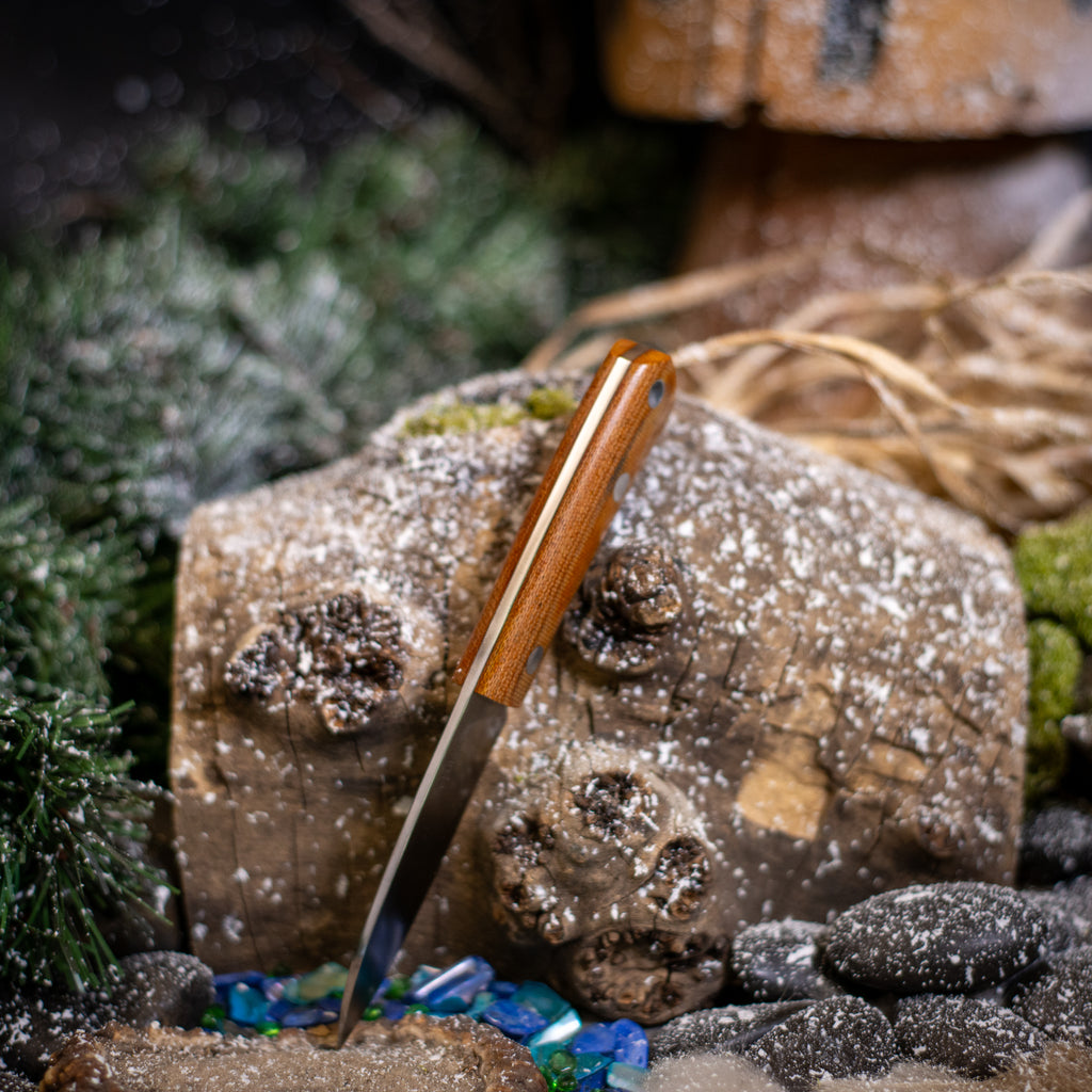 The Gnome is a compact, purpose-built fixed blade designed for precision cutting and everyday utility. Featuring a wharncliffe-style blade, it excels at controlled cuts, detailed work, and clean edge contact along the entire cutting surface.