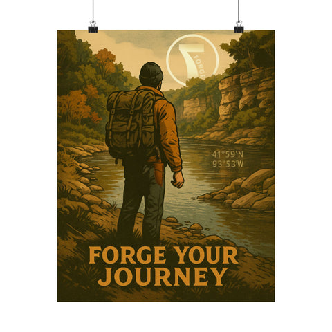 The 7Forge “Forge Your Journey” Poster is a tribute to grit, adventure, and the pursuit of mastery. Featuring a lone traveler standing before a rugged river landscape, it embodies the spirit of exploration and the courage to carve your own path.