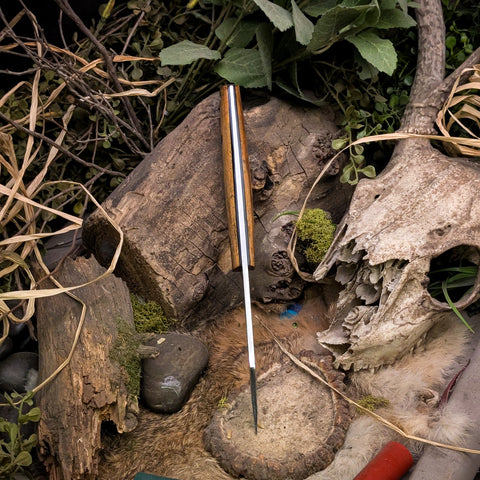 This knife was ground from Procut high carbon steel. It features a spalted maple handle with black canvas micarta liners and black canvas micarta pins